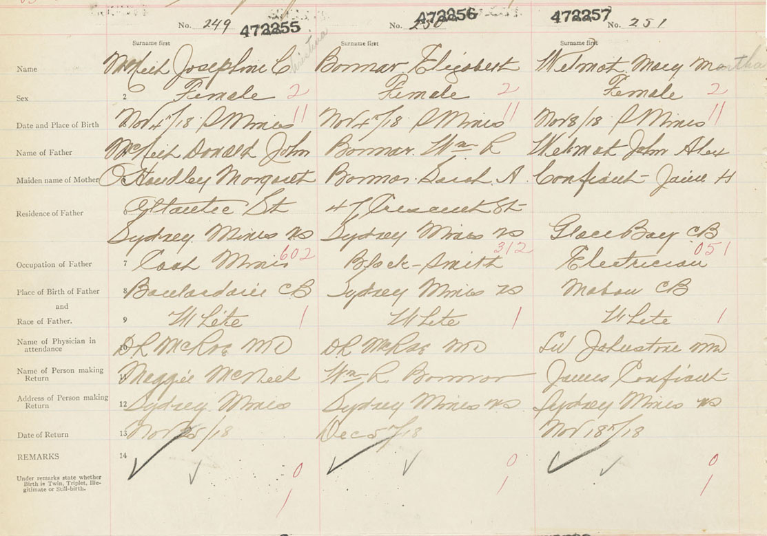 Female Birth Registration: Year: 1918 number: 47200257