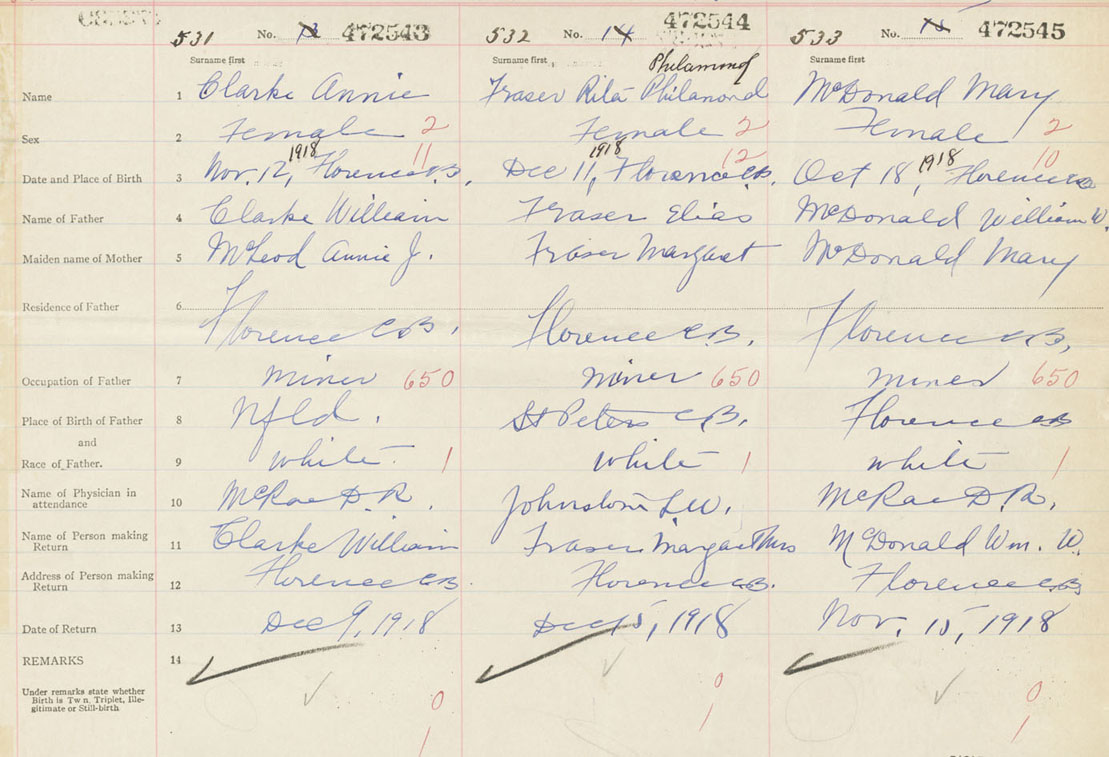 Female Birth Registration: Year: 1918 number: 47200543