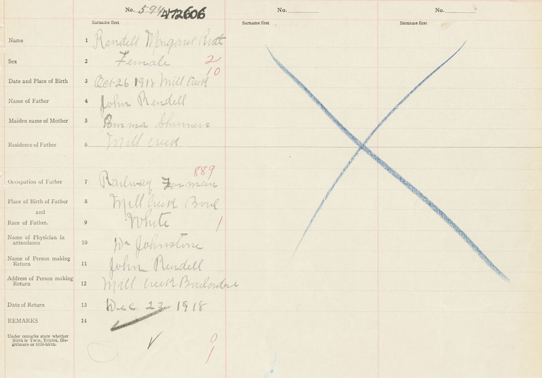 Female Birth Registration: Year: 1918 number: 47200606