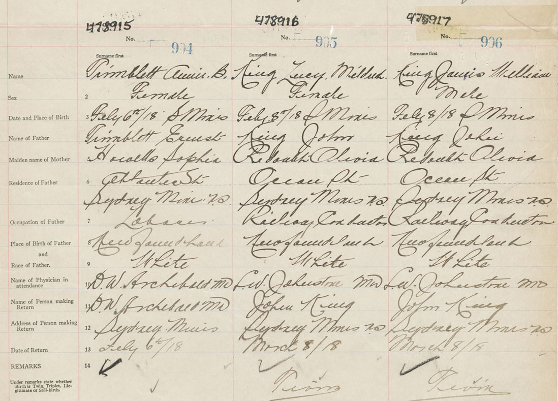 Female Birth Registration: Year: 1918 number: 47800915