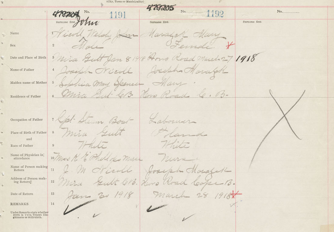 Female Birth Registration: Year: 1918 number: 47900205
