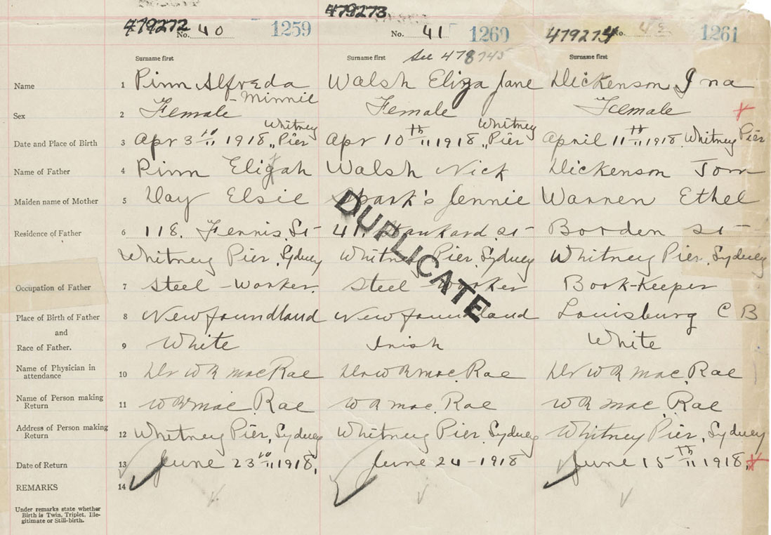 Female Birth Registration: Year: 1918 number: 47900274