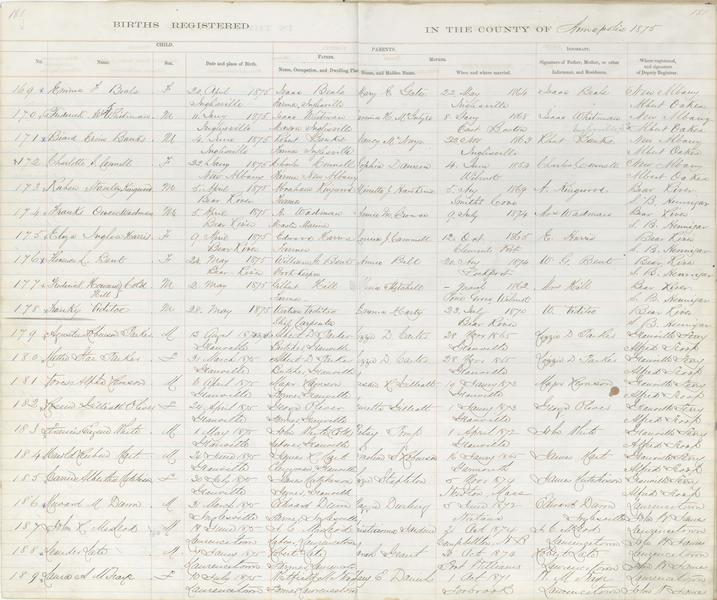 Birth Registration: Year: 1875 book: 1801 page: 181 number: 189