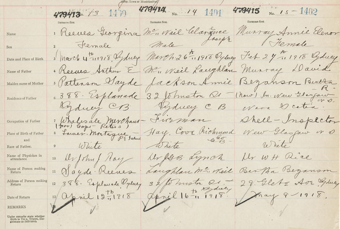 Female Birth Registration: Year: 1918 number: 47900413