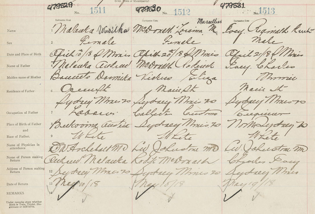 Female Birth Registration: Year: 1918 number: 47900529