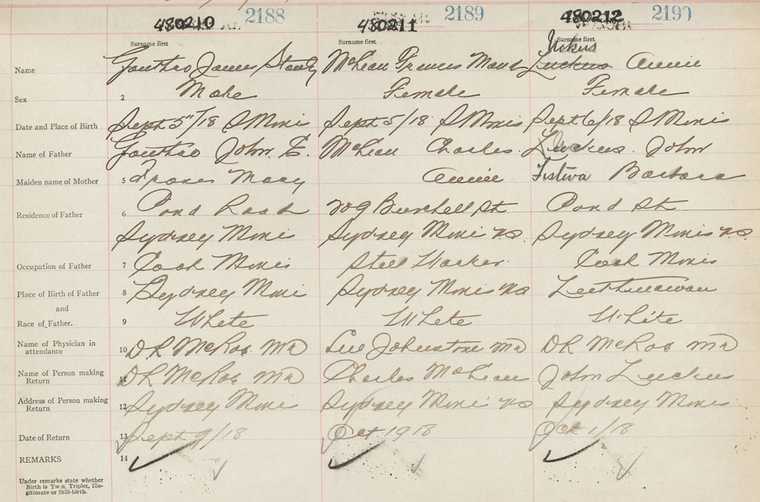 Female Birth Registration: Year: 1918 number: 48000212
