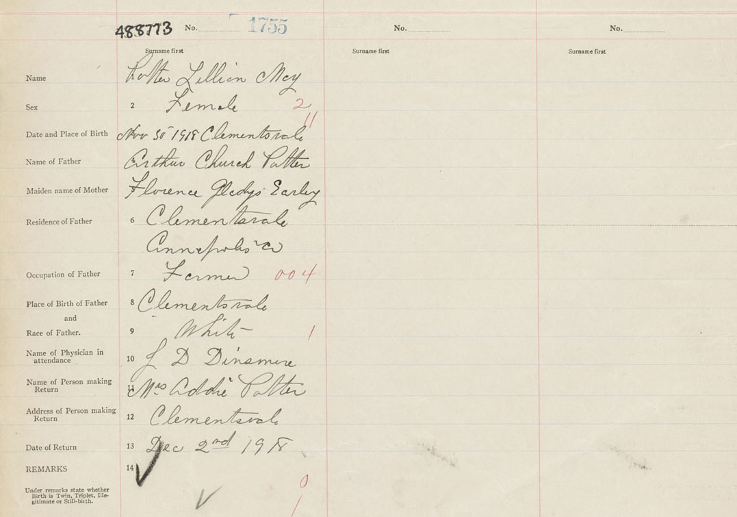Female Birth Registration: Year: 1918 number: 48800773