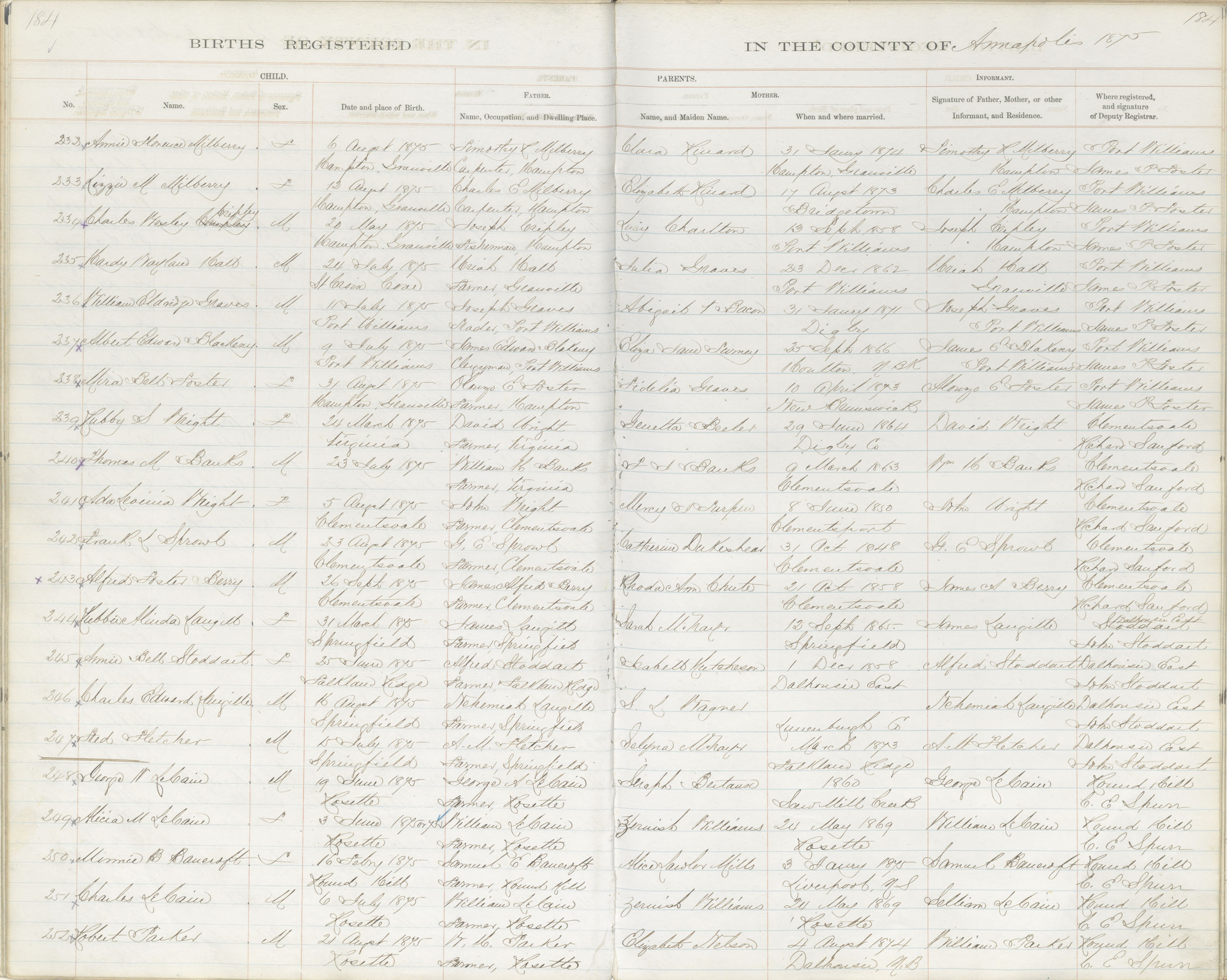 Birth Registration: Year: 1875 book: 1801 page: 184 number: 236