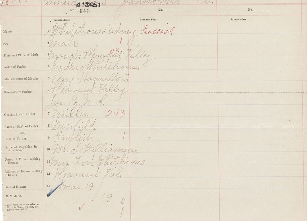 Male Birth Registration: Year: 1919 number: 41300651