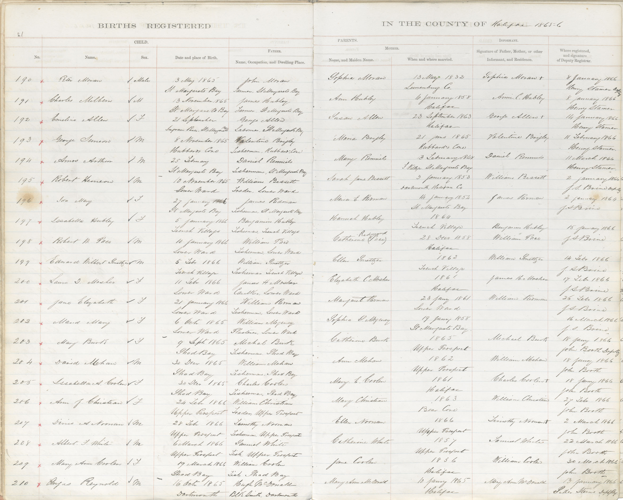 Birth Registration: Year: 1865 book: 1809 page: 21 number: 210