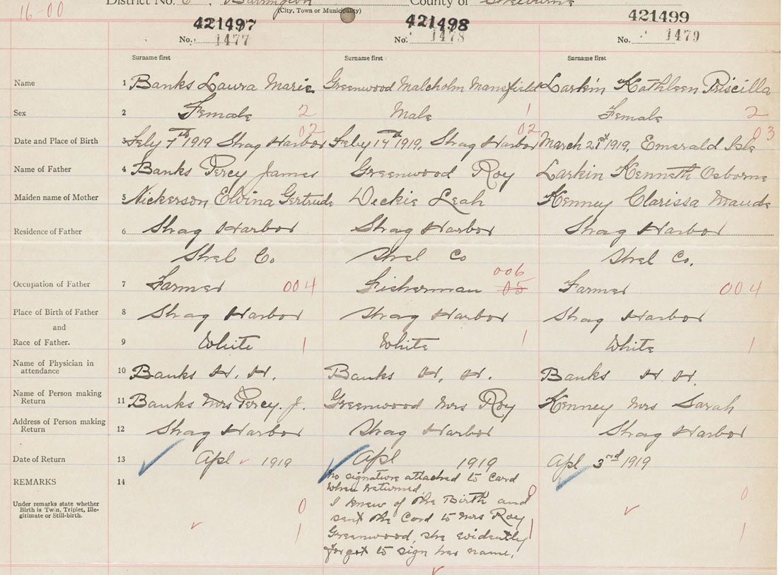 Female Birth Registration: Year: 1919 number: 42100497