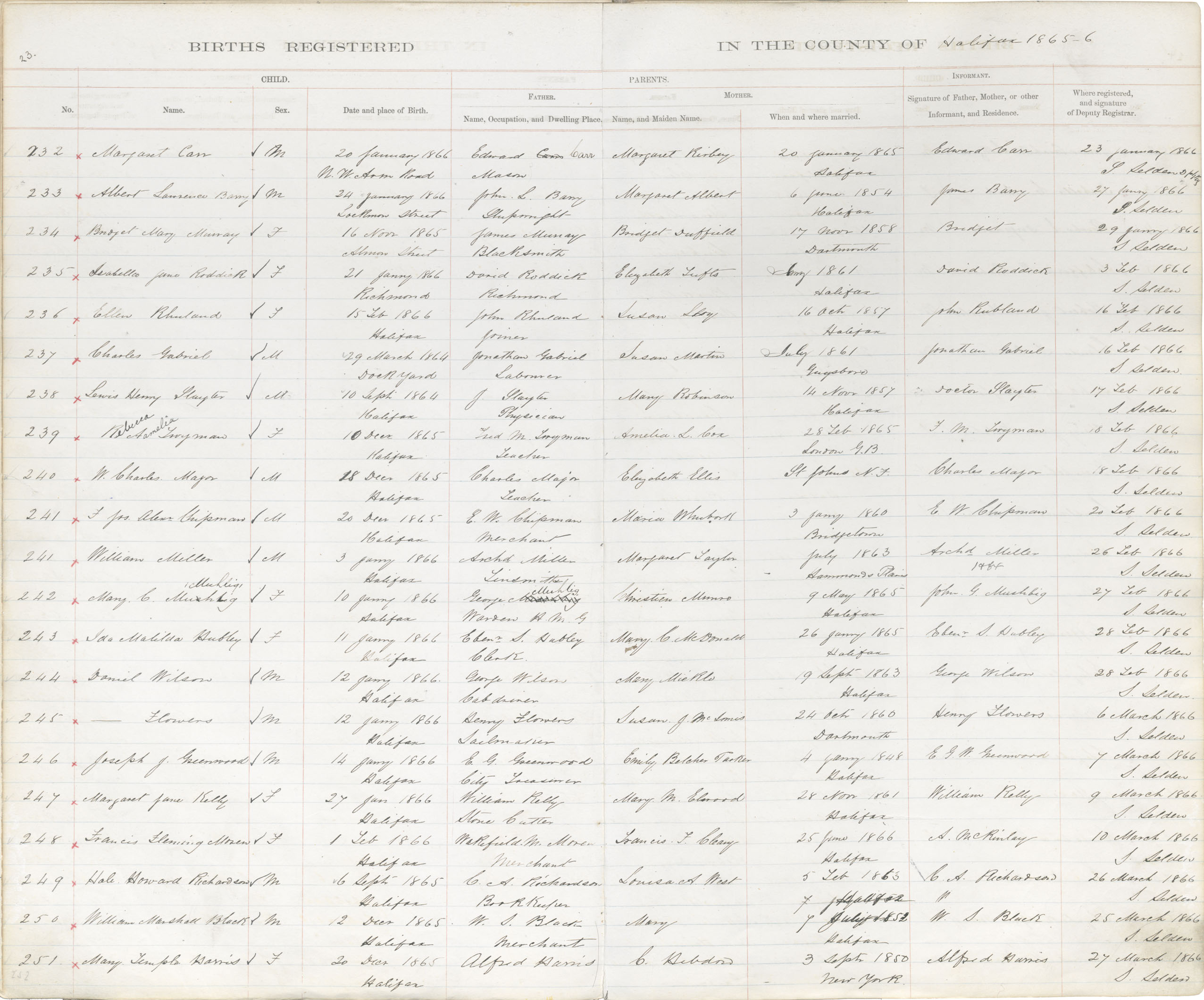 Birth Registration: Year: 1865 book: 1809 page: 23 number: 251