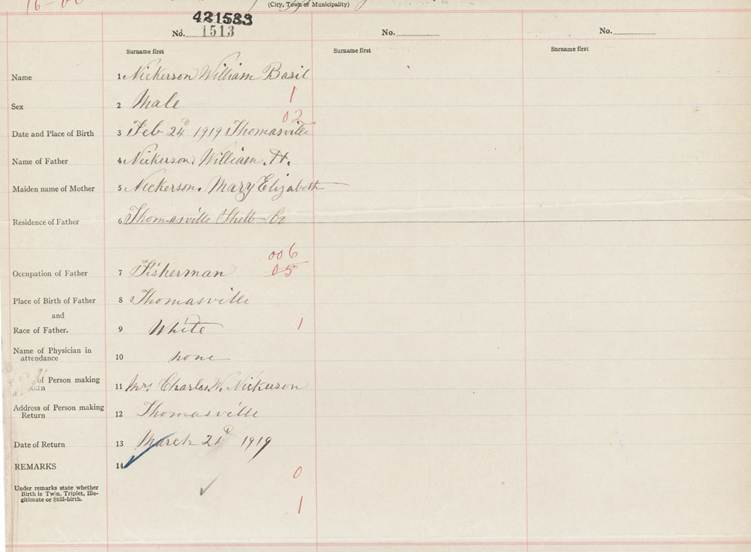 Male Birth Registration: Year: 1919 number: 42100533
