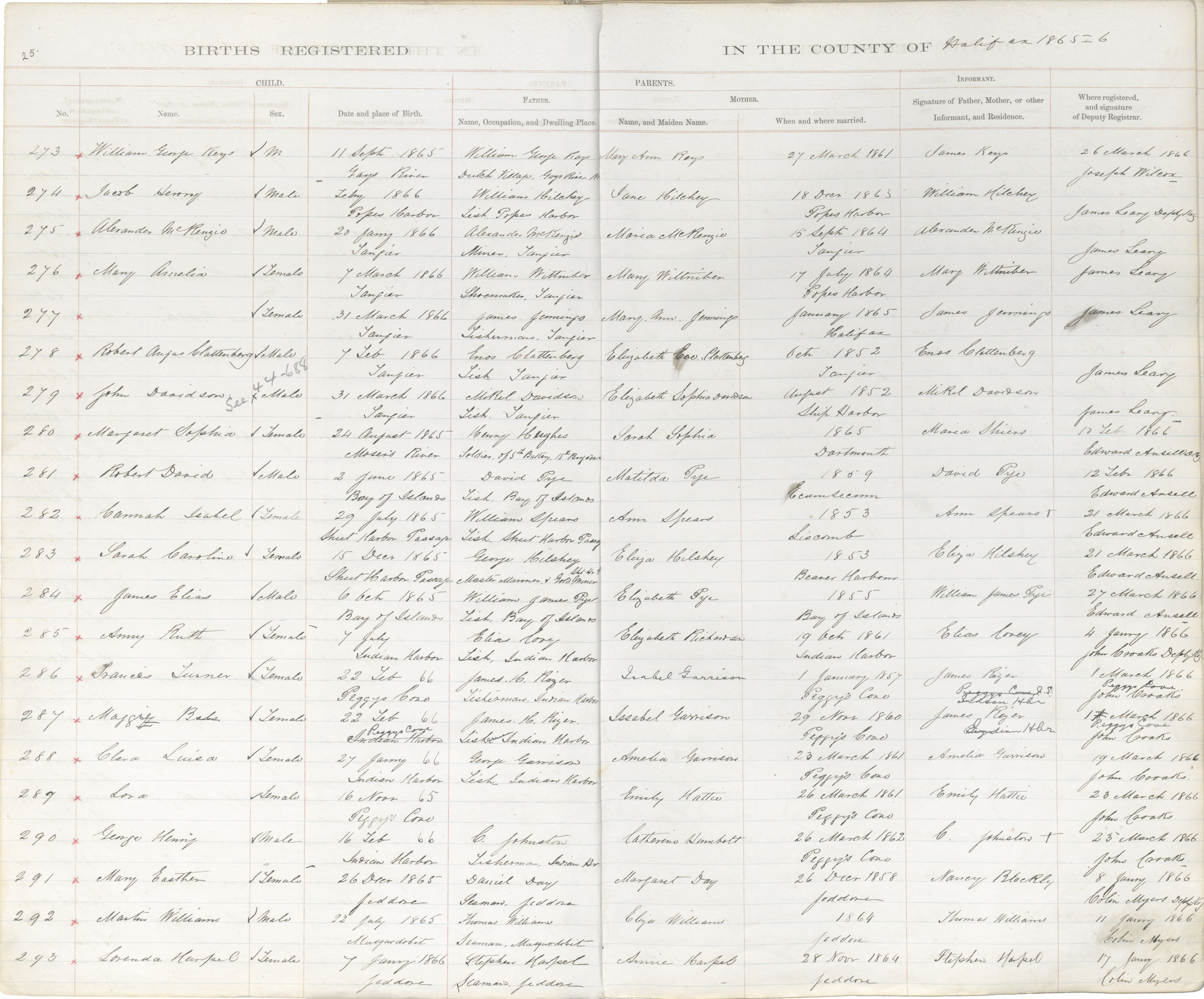 Female Birth Registration: Year: 1866 book: 1809 page: 25 number: 293