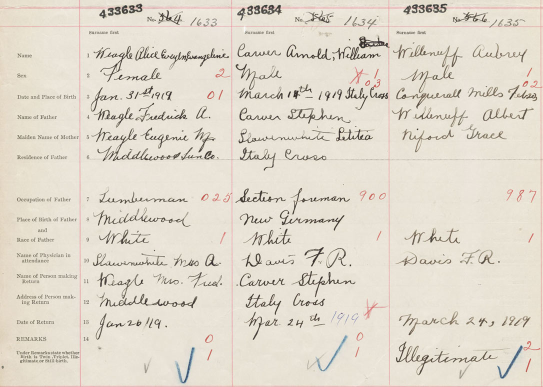 Female Birth Registration: Year: 1919 number: 43300633