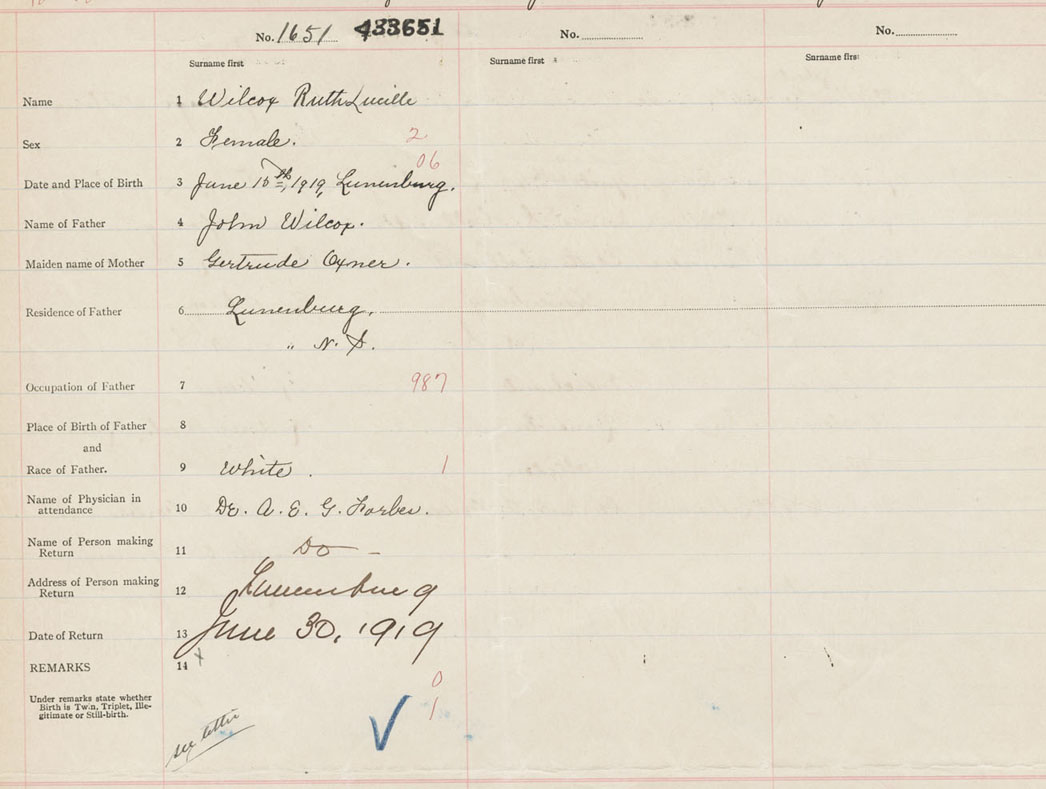 Female Birth Registration: Year: 1919 number: 43300651