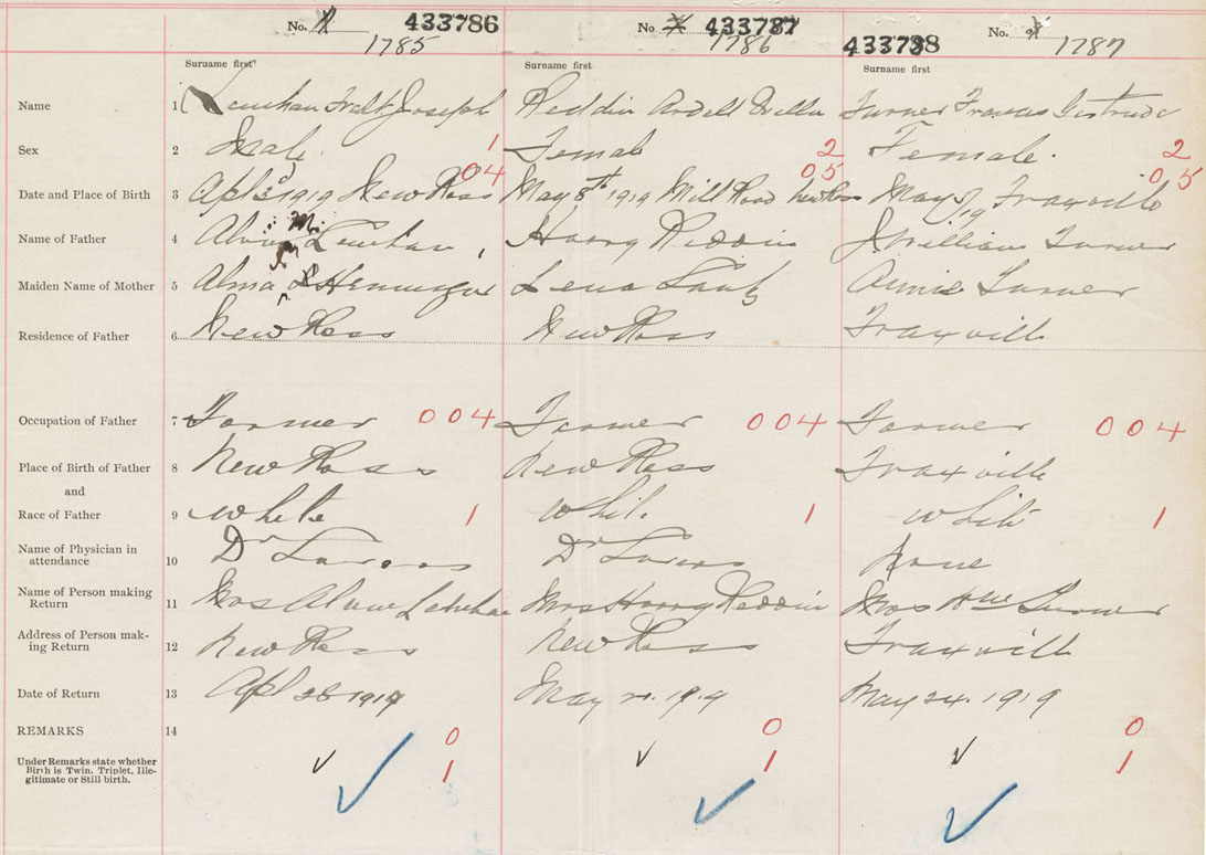 Female Birth Registration: Year: 1919 number: 43300788
