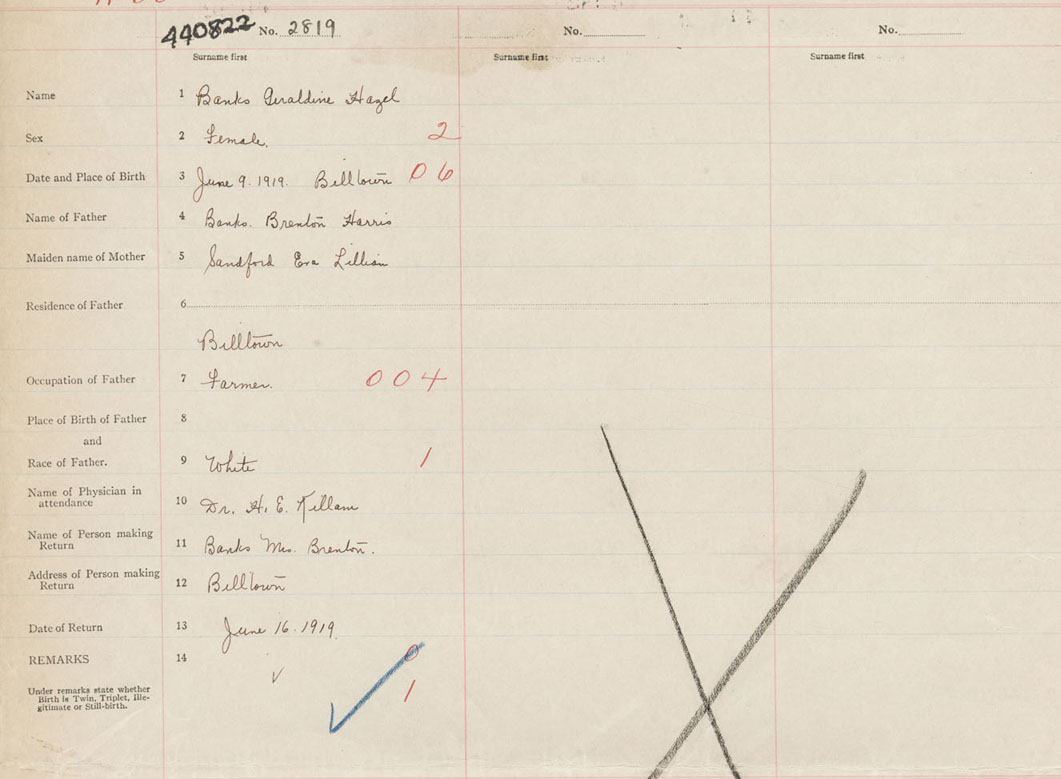 Female Birth Registration: Year: 1919 number: 44000822