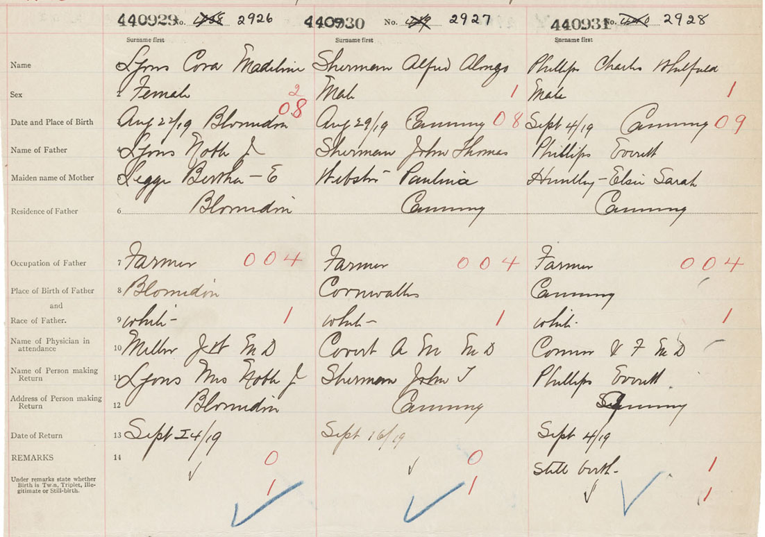Female Birth Registration: Year: 1919 number: 44000929