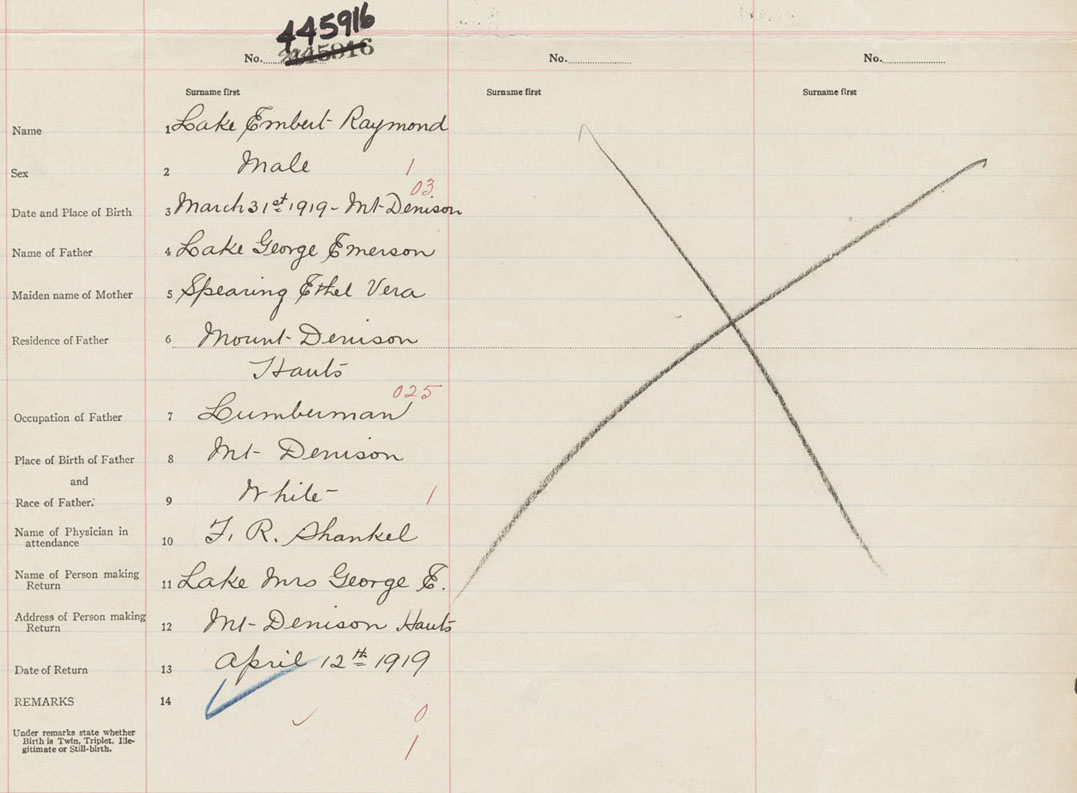 Male Birth Registration: Year: 1919 number: 44500916