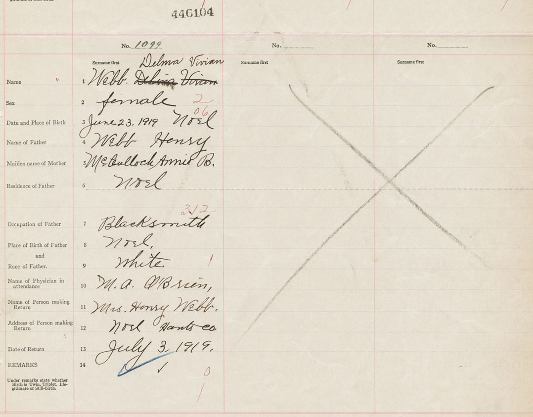 Female Birth Registration: Year: 1919 number: 44600104