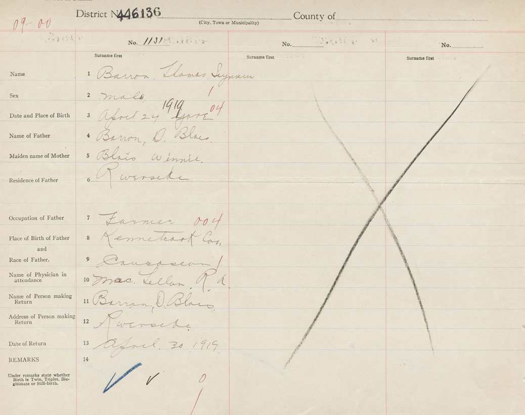 Male Birth Registration: Year: 1919 number: 44600136