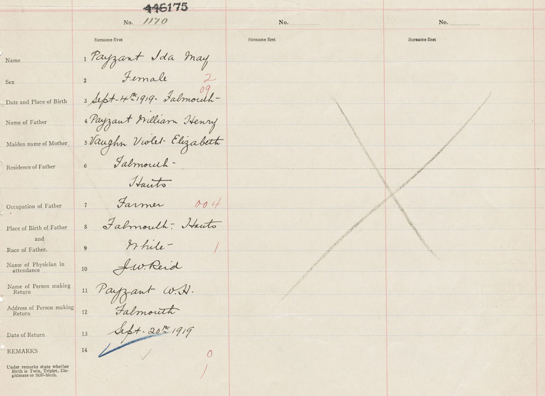 Female Birth Registration: Year: 1919 number: 44600175