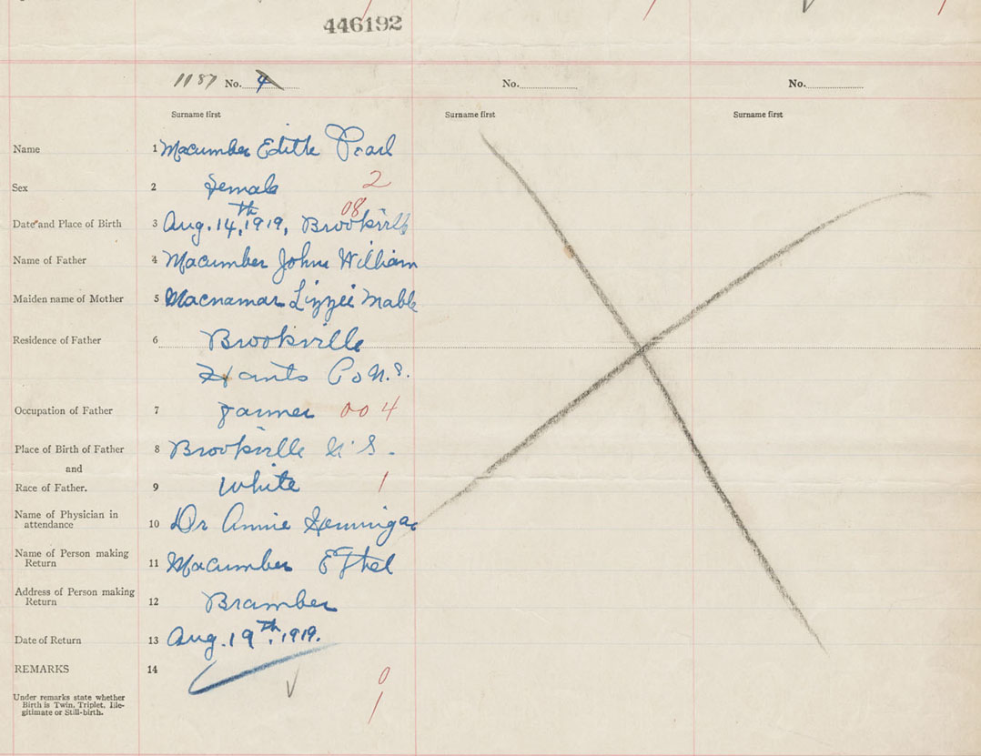Female Birth Registration: Year: 1919 number: 44600192