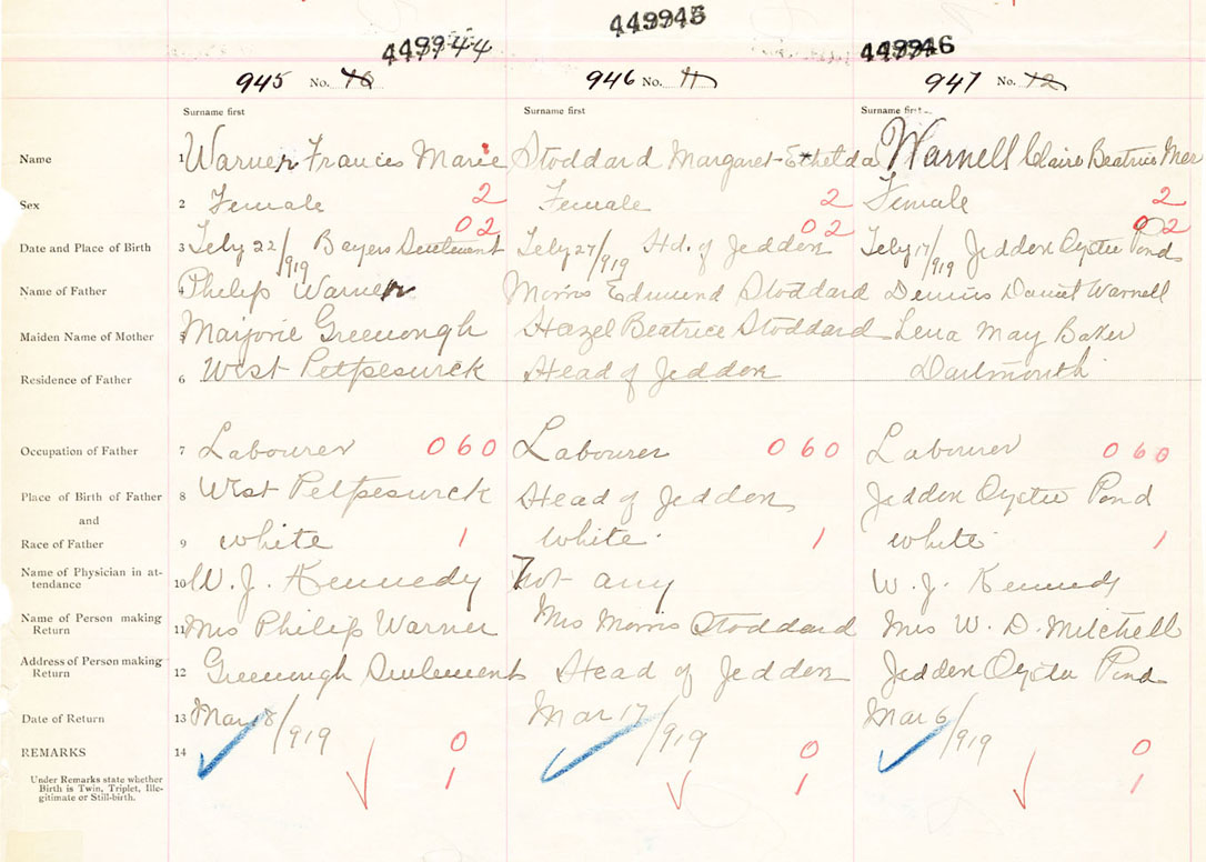 Female Birth Registration: Year: 1919 number: 44900946