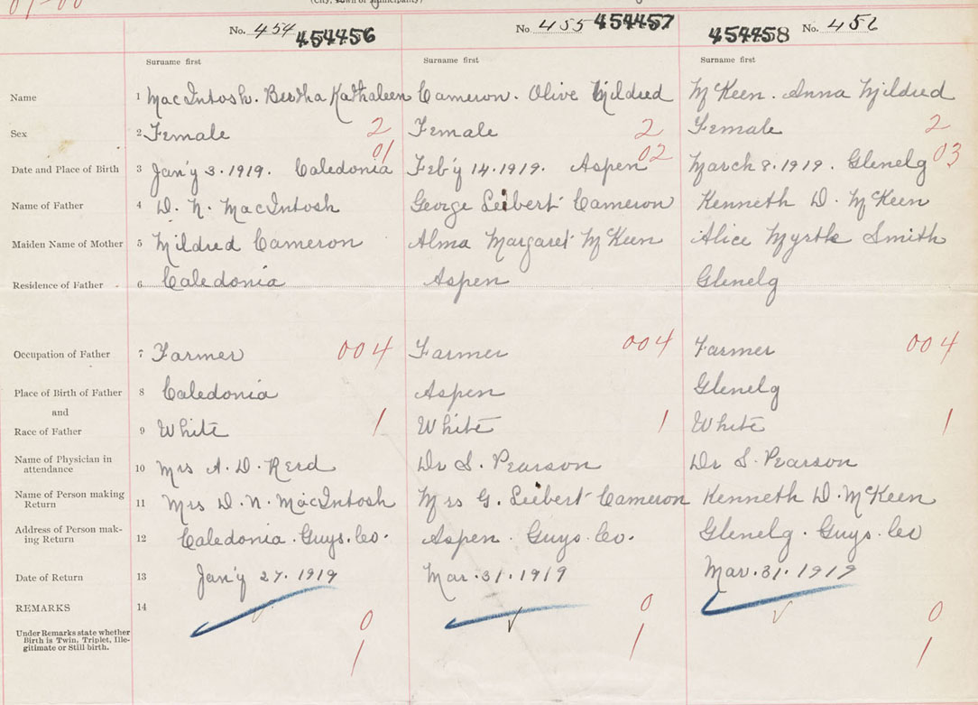 Female Birth Registration: Year: 1919 number: 45400456
