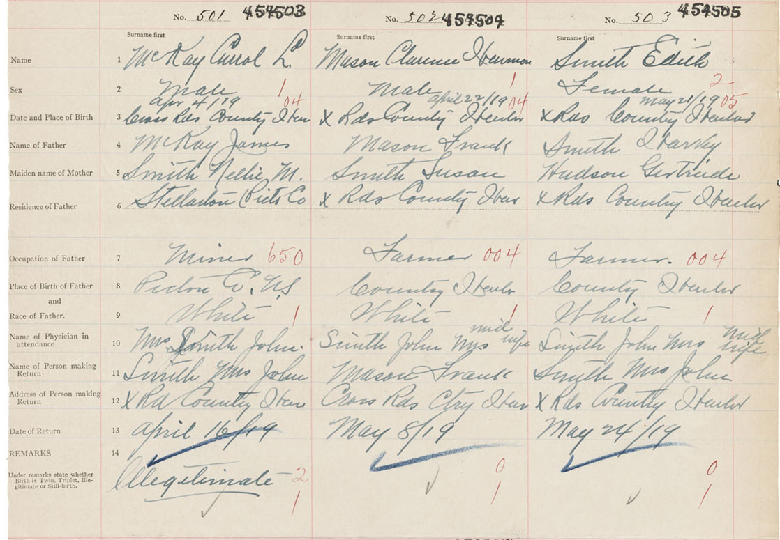 Male Birth Registration: Year: 1919 number: 45400504