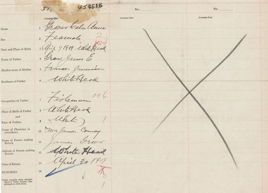 Female Birth Registration: Year: 1919 number: 45400516