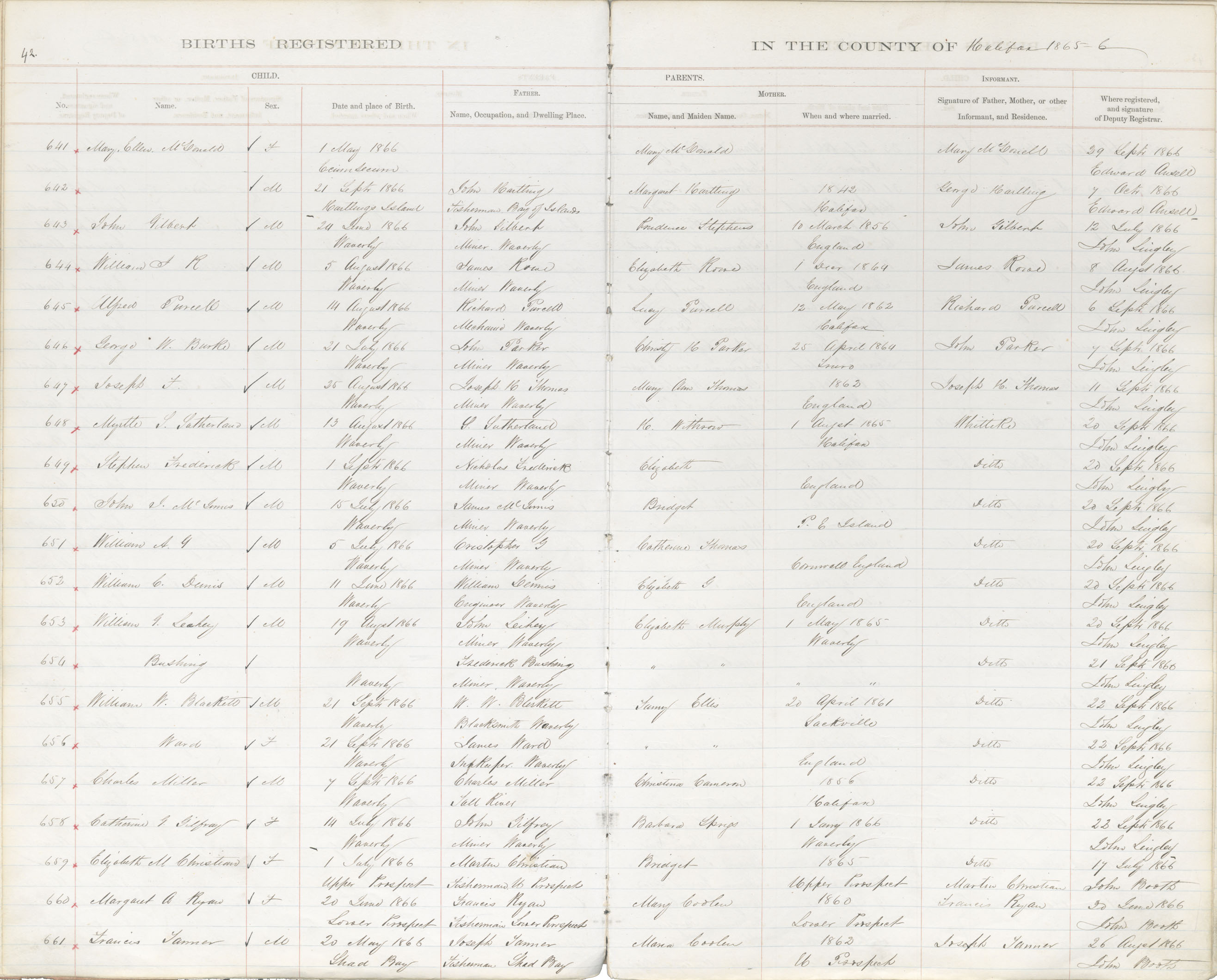 Birth Registration: Year: 1866 book: 1809 page: 42 number: 641