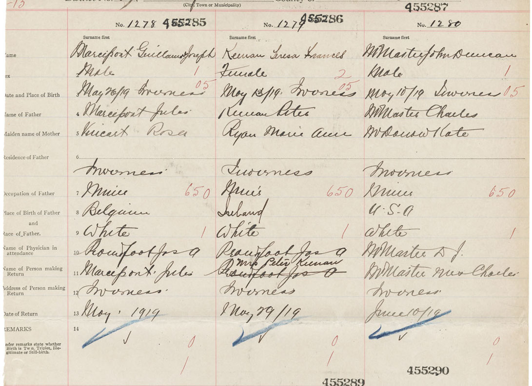 Male Birth Registration: Year: 1919 number: 45500287
