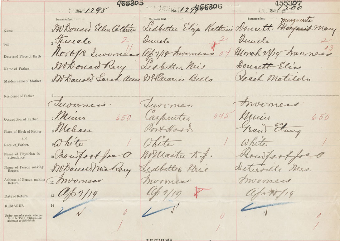 Female Birth Registration: Year: 1919 number: 45500305