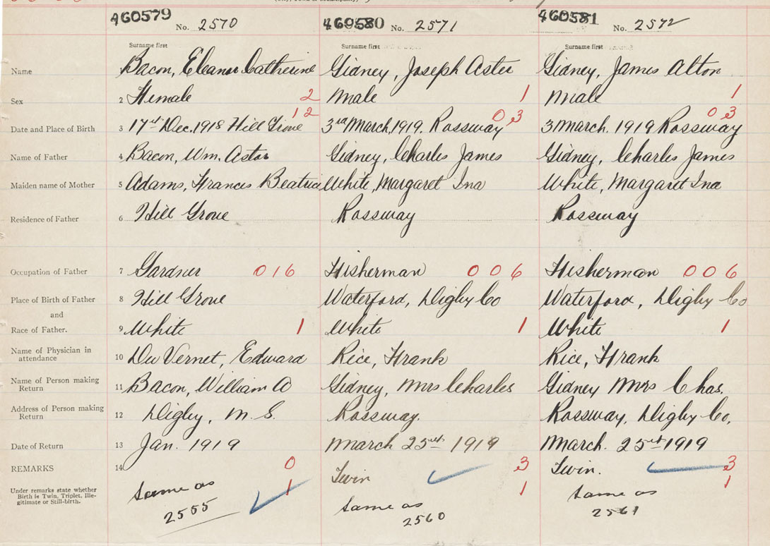 Female Birth Registration: Year: 1919 number: 46000579
