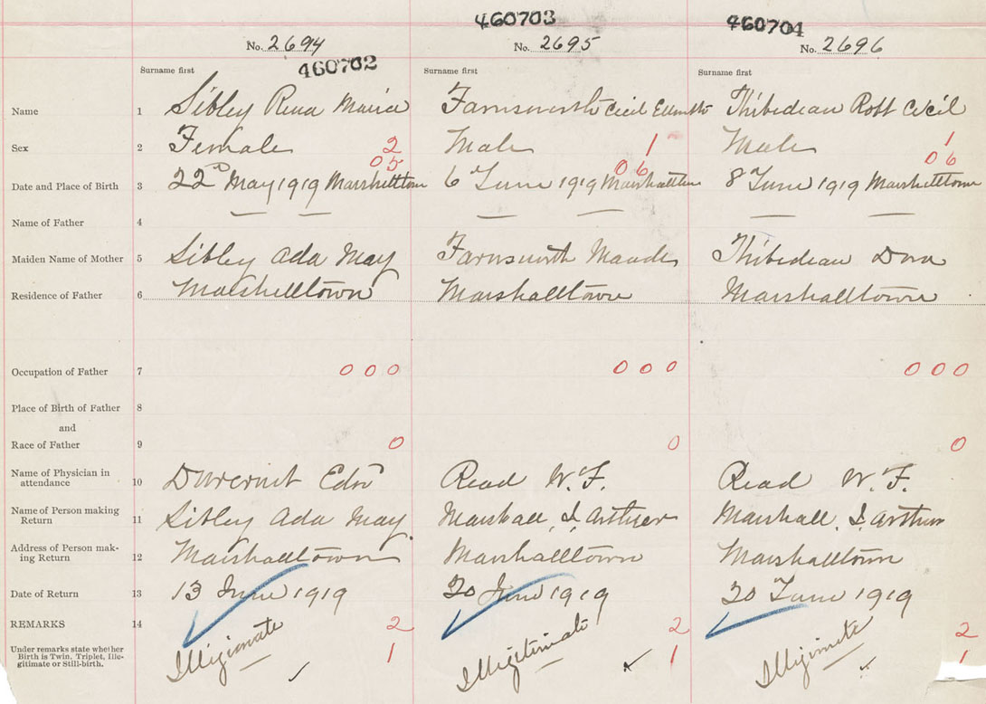 Female Birth Registration: Year: 1919 number: 46000702