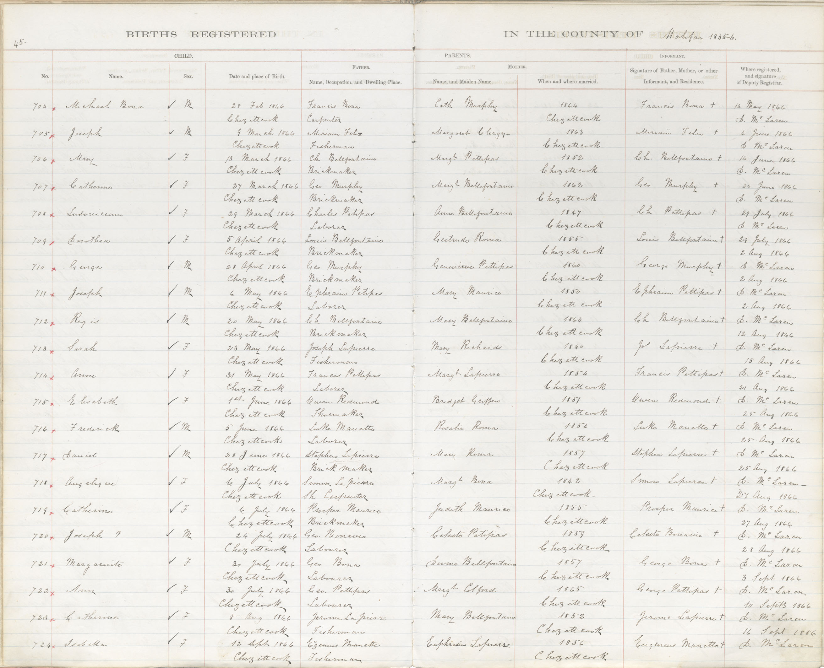 Birth Registration: Year: 1866 book: 1809 page: 45 number: 704