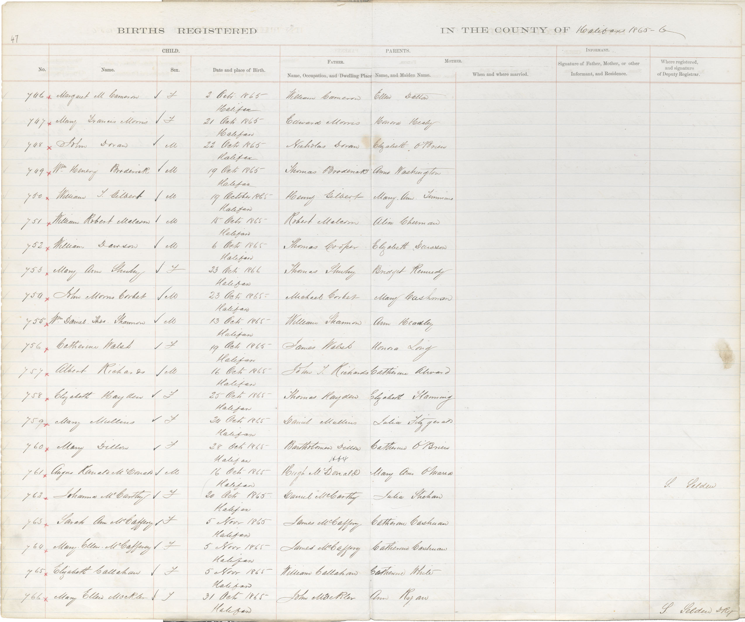 Birth Registration: Year: 1865 book: 1809 page: 47 number: 746