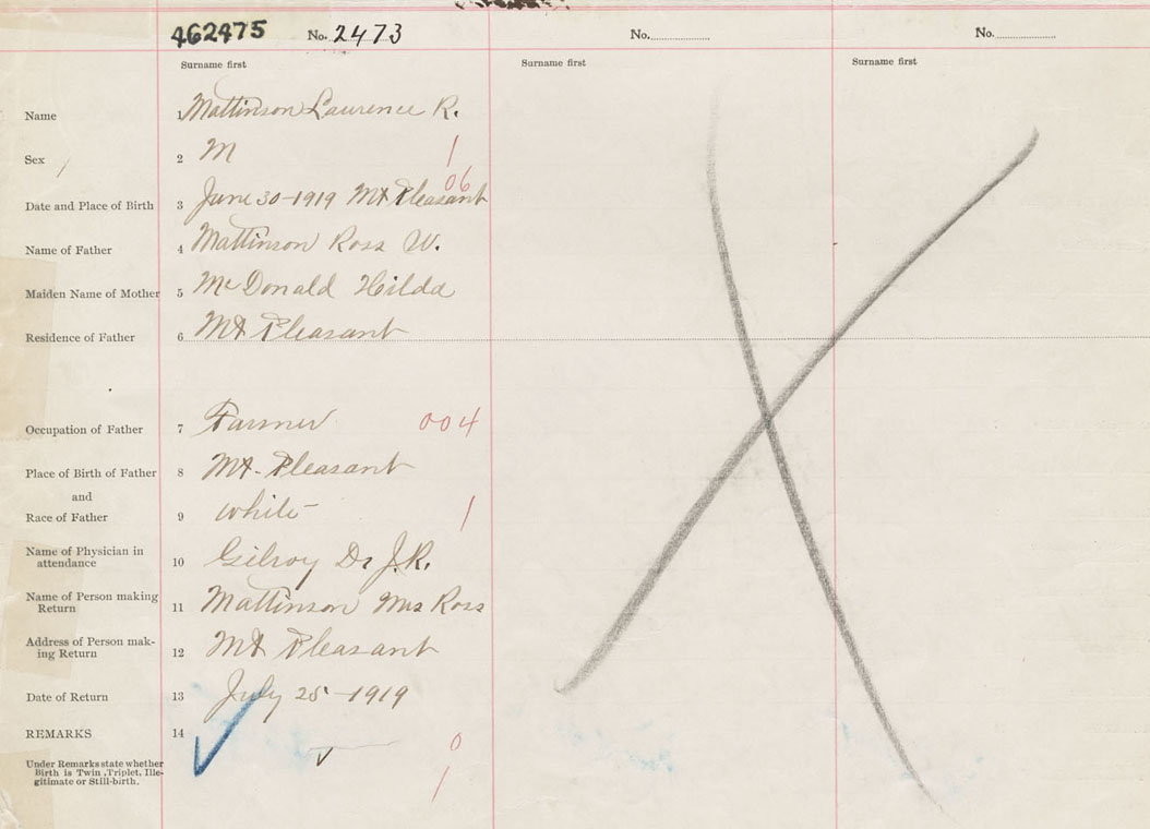 Male Birth Registration: Year: 1919 number: 46200475
