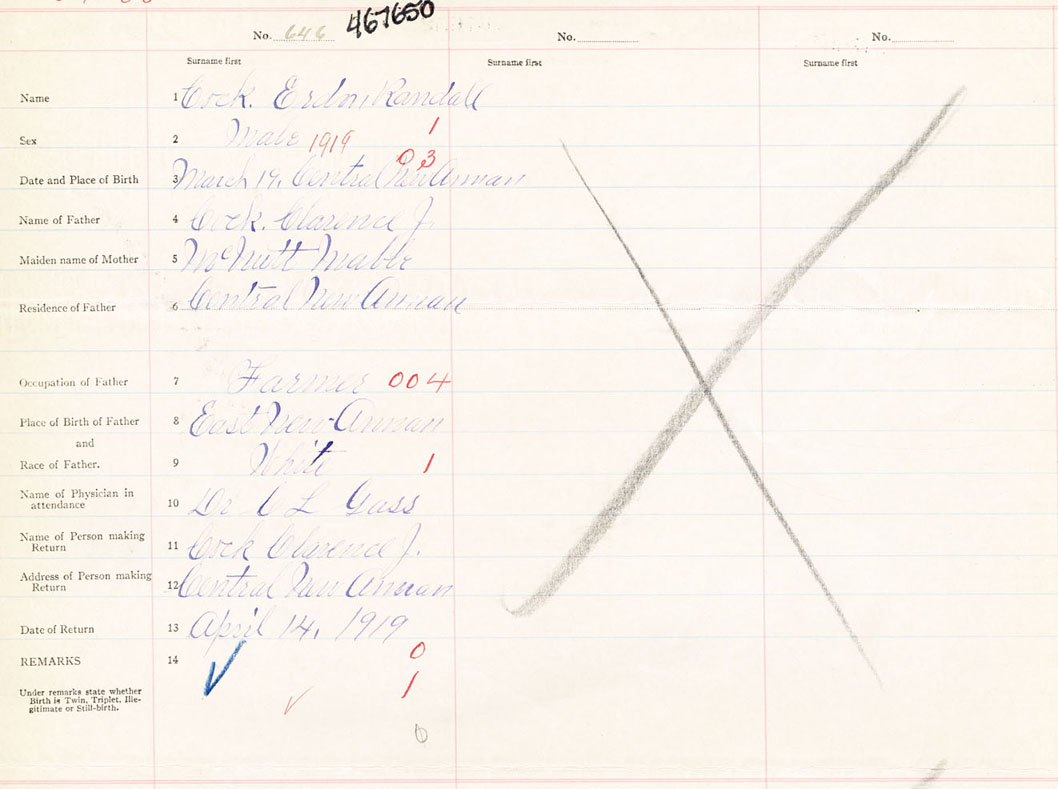 Male Birth Registration: Year: 1919 number: 46700650