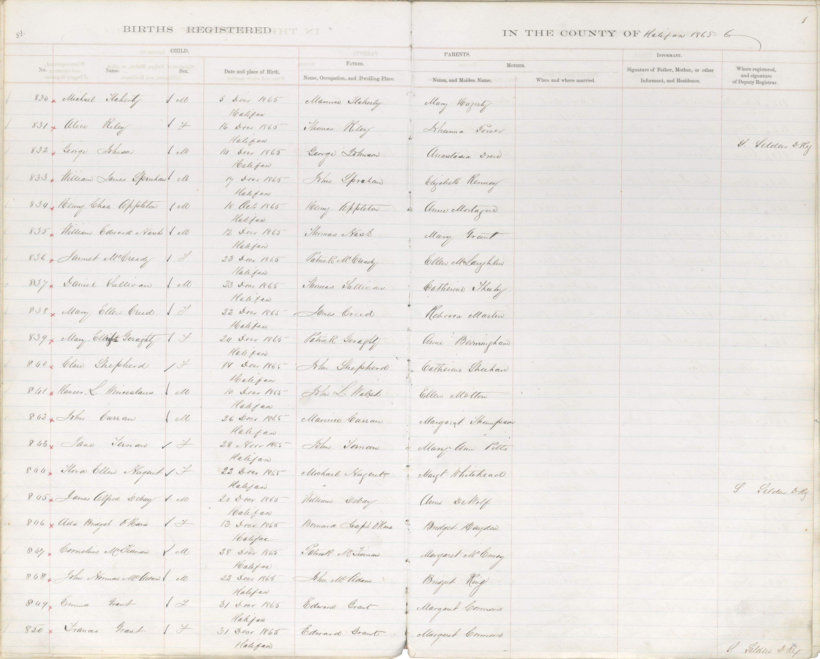 Birth Registration: Year: 1865 book: 1809 page: 51 number: 830