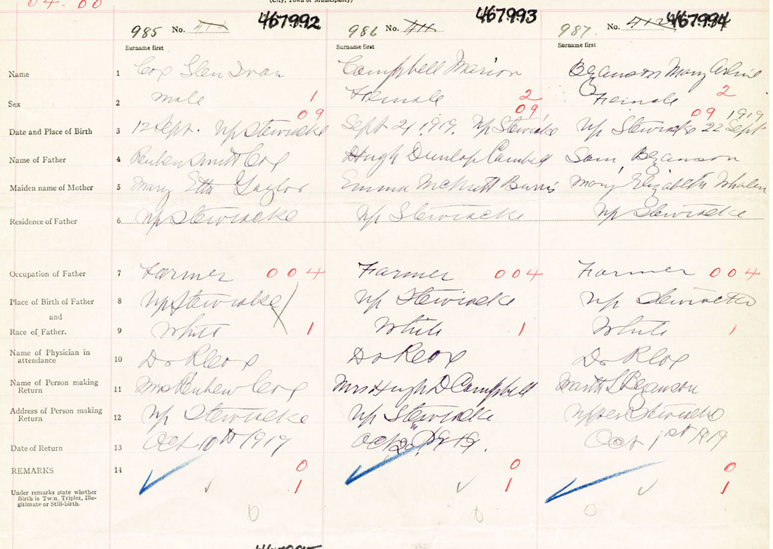 Female Birth Registration: Year: 1919 number: 46700994