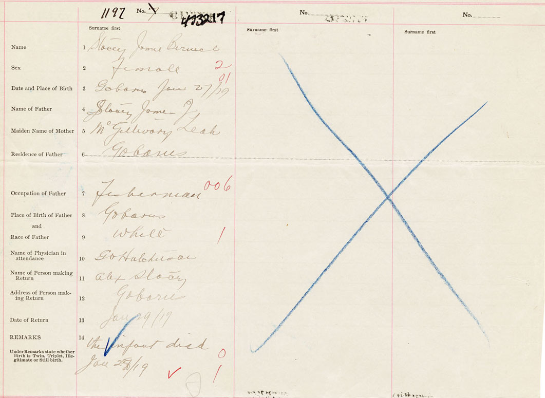 Female Birth Registration: Year: 1919 number: 47300217