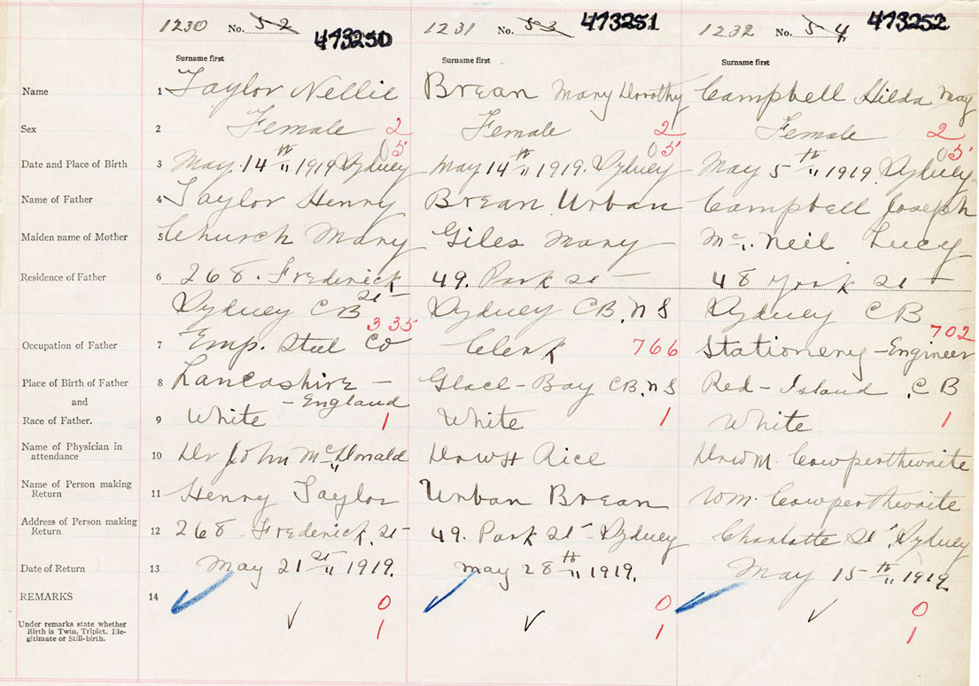 Female Birth Registration: Year: 1919 number: 47300252