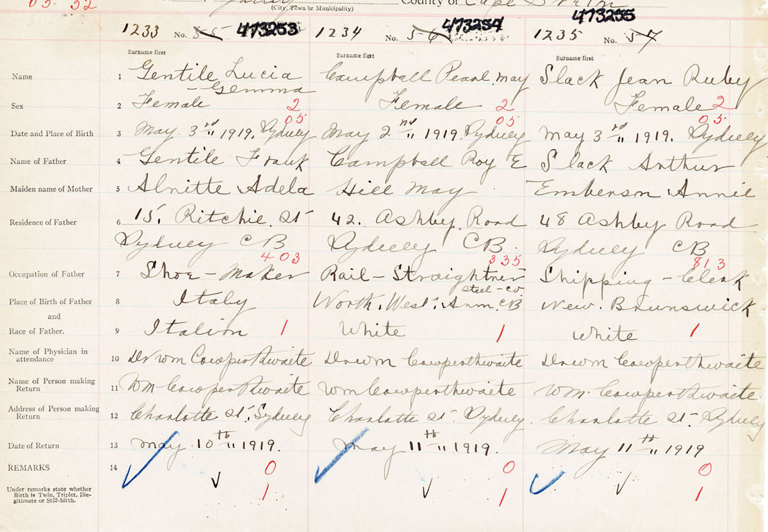 Female Birth Registration: Year: 1919 number: 47300255
