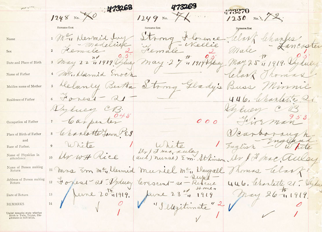 Female Birth Registration: Year: 1919 number: 47300268