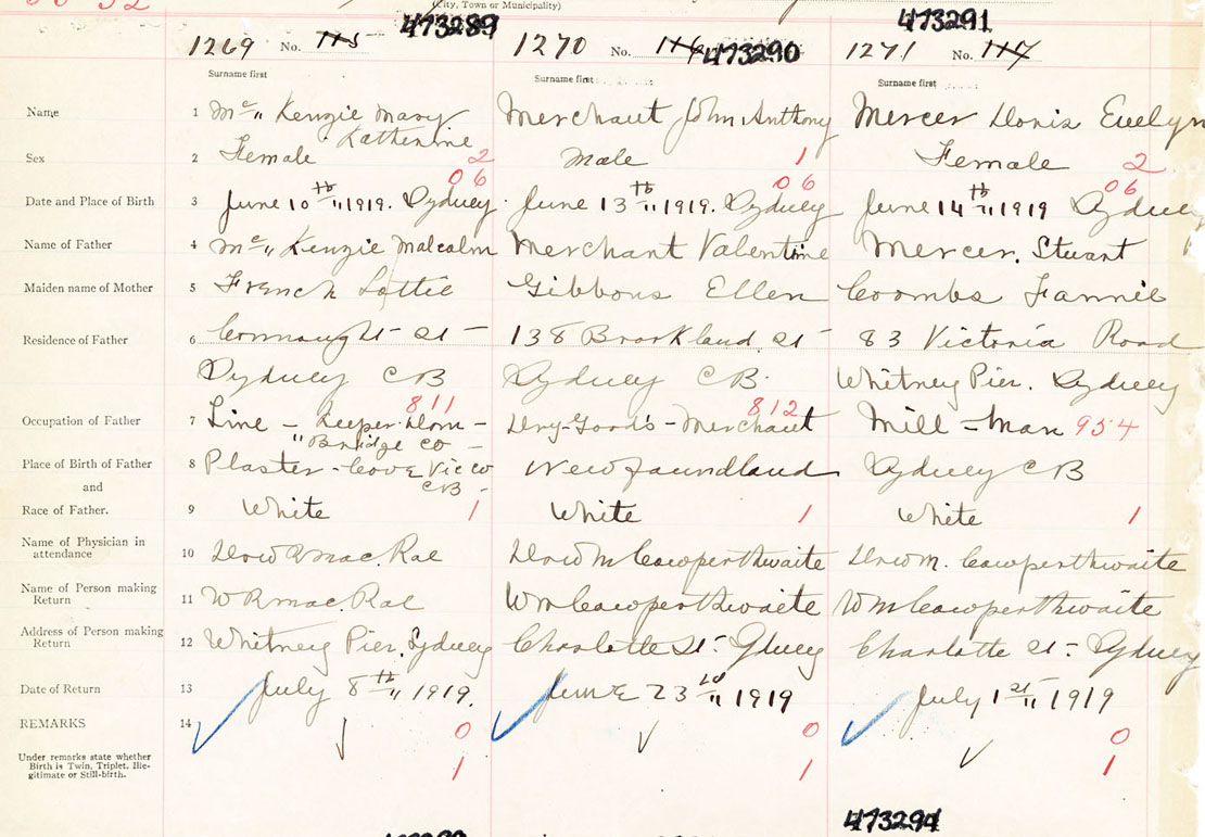 Female Birth Registration: Year: 1919 number: 47300289