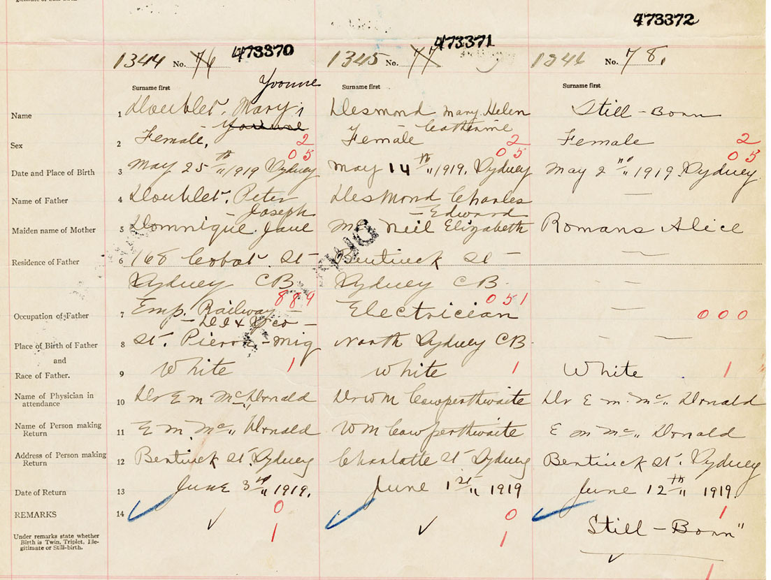 Female Birth Registration: Year: 1919 number: 47300370