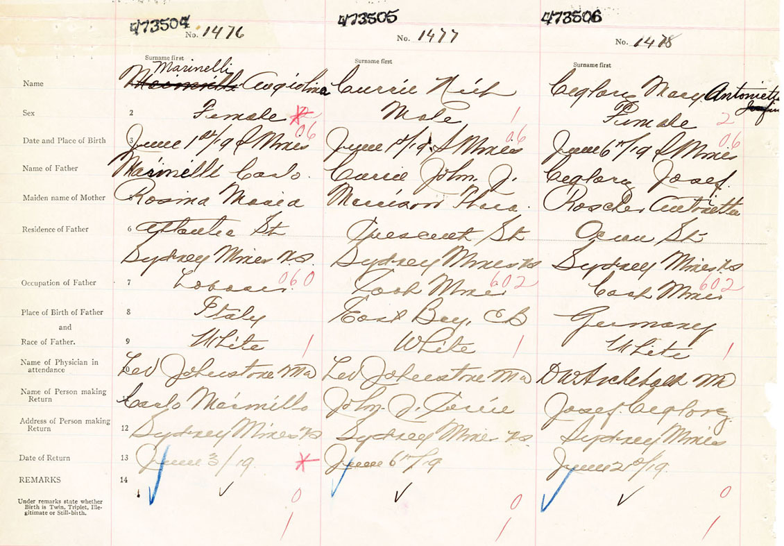 Female Birth Registration: Year: 1919 number: 47300504